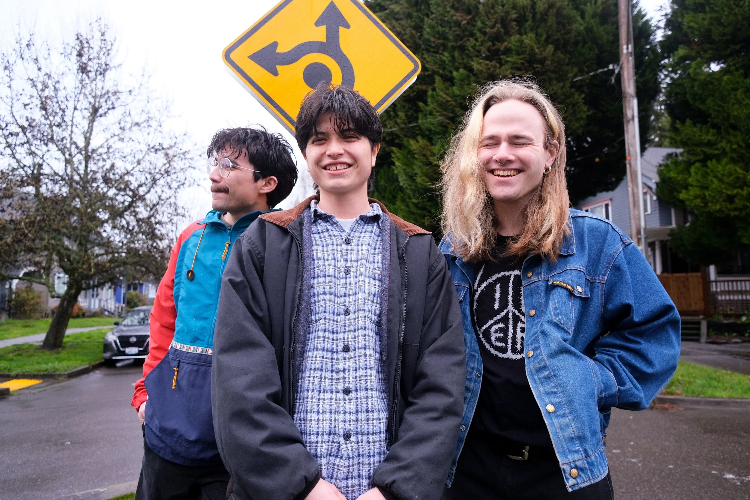 hidden driver is an indie rock band out of tacoma, washington, featuring hugh schmidt (ORTHODOXXER, wellspring) on bass vi, ollie (mini golf water feature) on guitar, and trevor gallo on drums. in a seeming protest of the short-lived hype that many bands of the internet era are subject to, they quietly released their debut EP on december 31, 2023 to, in hugh’s words, “kill the release.” their songs span genres from power pop to emo, with some surprisingly folky lead guitar parts, and i’m stoked on every single one. you probably will be, too.